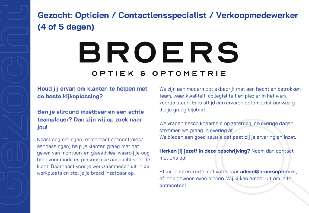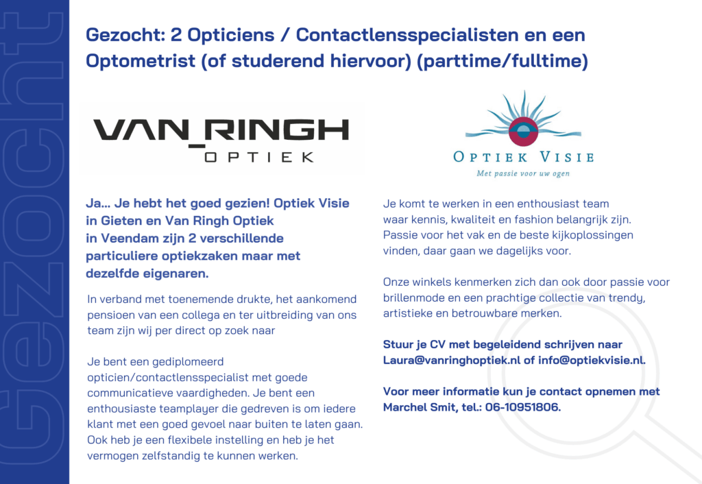 Een vacature bij je optiekzaak? Aan de slag als opticien? Ga je je optiekzaak verkopen? Plaats je advertentie op de website van de NUVO!